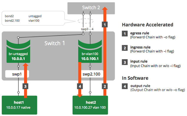 iptablesand the switch silicon process packets. The switch silicon reorders rules whenswitchdwrites to the ASIC, whereas traditionaliptablesexecute the list of rules in order. -