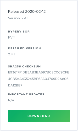 (Note: This must be an SSD; use of other storage options can lead to system instability and are not supported.)Network interface speed 1 Gb NIC Hypervisor KVM/QCOW (QEMU Copy on Write) image for servers running CentOS, Ubuntu, and RedHat operating systems -