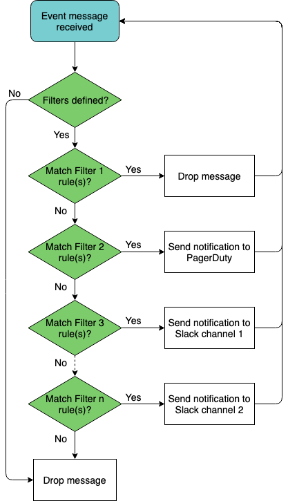 A notification configuration must contain one channel, one rule, and one filter. Creation of the configuration follows this same path: