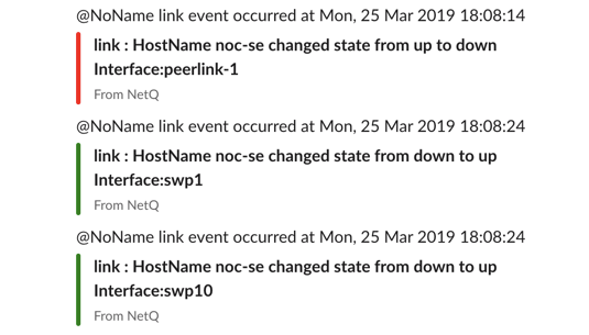 cumulus@switch:~$ netq add notification channel slack slk-netq-events webhook https://hooks.slack.com/services/text/moretext/evenmoretext