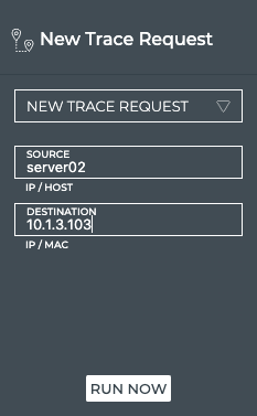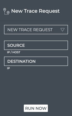 | New Trace Request | Create a new layer 3 trace request. Use the large Trace Request card to create a new layer 2 or 3 request. |