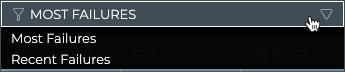 It is useful to know which devices are experiencing the most issues with their interfaces in general, as this can help focus troubleshooting efforts toward selected devices versus the service itself. To view devices with the most issues, select Most Failures from the filter above the table on the right.