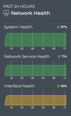 Overall network health is a calculated average of several key health metrics: System, Network Services, and Interface health.