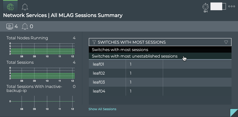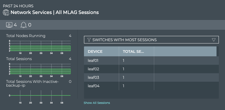 | Show All Sessions | Link to view all MLAG sessions in the full screen card |