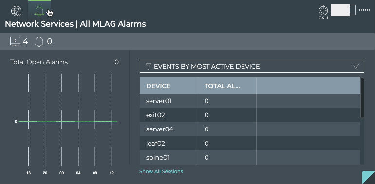 Click Show All Sessions to investigate all MLAG sessions with events in the full screen card.