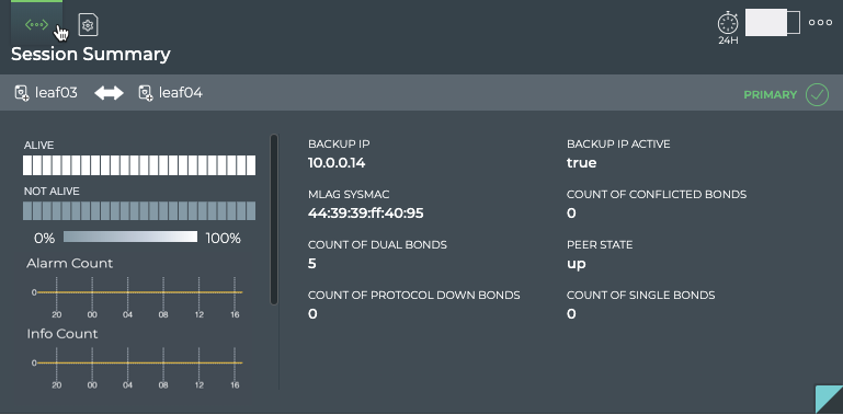 From this card, you can also view the node role, peer role and state, and MLAG system MAC address which identify the session in more detail.