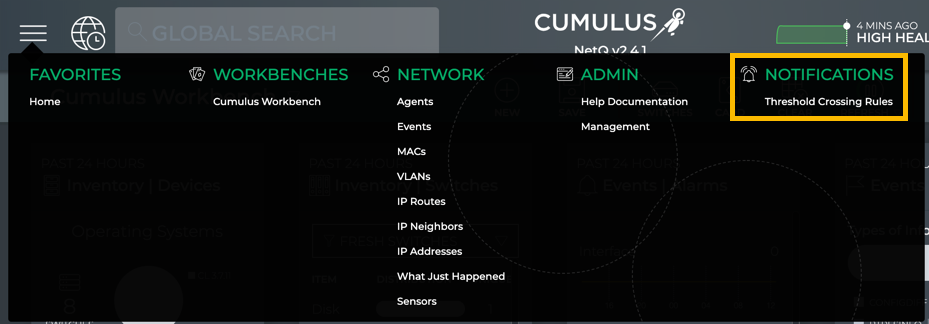 As an administrator, you can manage access to and various application-wide settings for the Cumulus NetQ UI from a single location.