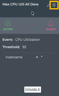 When a rule is filtered by more than one parameter, each is displayed on the card. Leaving a value blank for a parameter defaults to all; all hostnames, interfaces, or sensors.