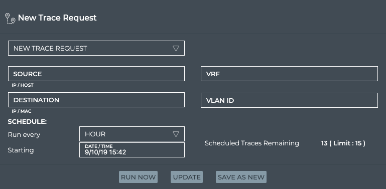 Specify a VLAN for a layer 2 trace or (optionally) a VRF for a layer 3 trace.