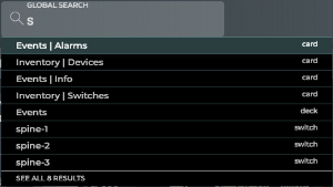 The Global Search field in the UI header enables you to search for devices or cards. You can create new searches or run existing searches.