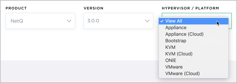If you are upgrading NetQ Platform software for a NetQ On-premises Appliance or VM, select Appliance to download the NetQ-3.0.0.tgz file. If you are upgrading NetQ Collector software for a NetQ Cloud Appliance or VM, select Appliance (Cloud) to download the NetQ-3.0.0-opta.tgz file.