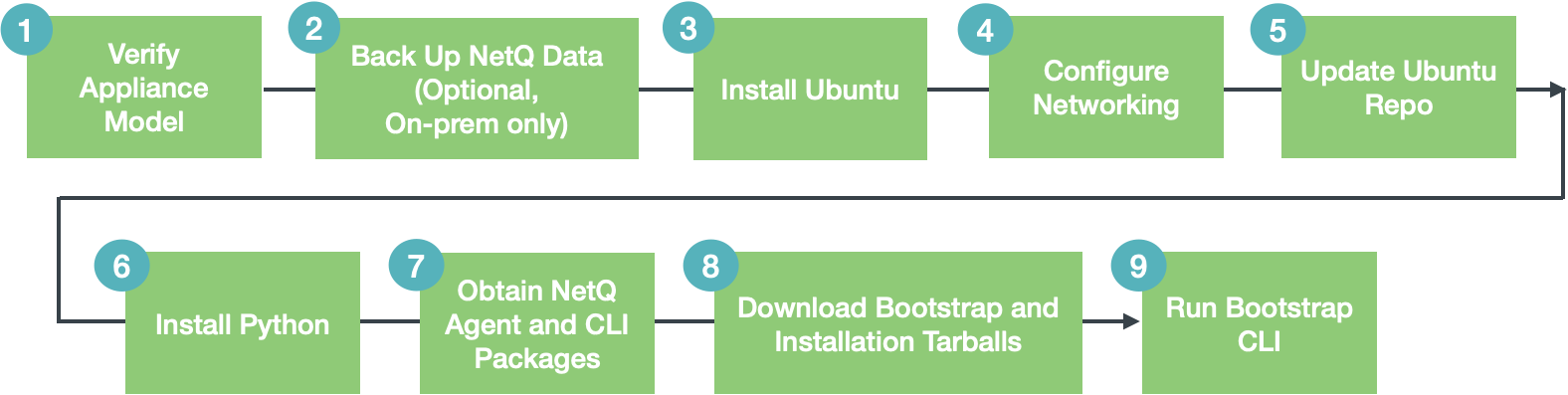 This topic describes how to prepare a NetQ 2.4.x or earlier NetQ Appliance before installing NetQ 3.1.x. The steps are the same for both the on-premises and cloud appliances. The only difference is the software you download for each platform. On completion of the steps included here, you will be ready to perform a fresh installation of NetQ 3.1.x.