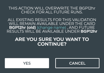 Click Yes to complete the changes, or change the name of the previous version of this scheduled validation.