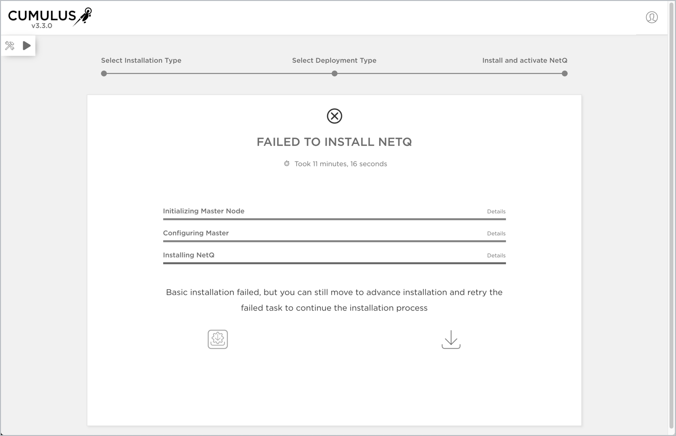 to be taken to the advanced installation flow and retry the failed task. Refer to the Advanced tab for instructions.