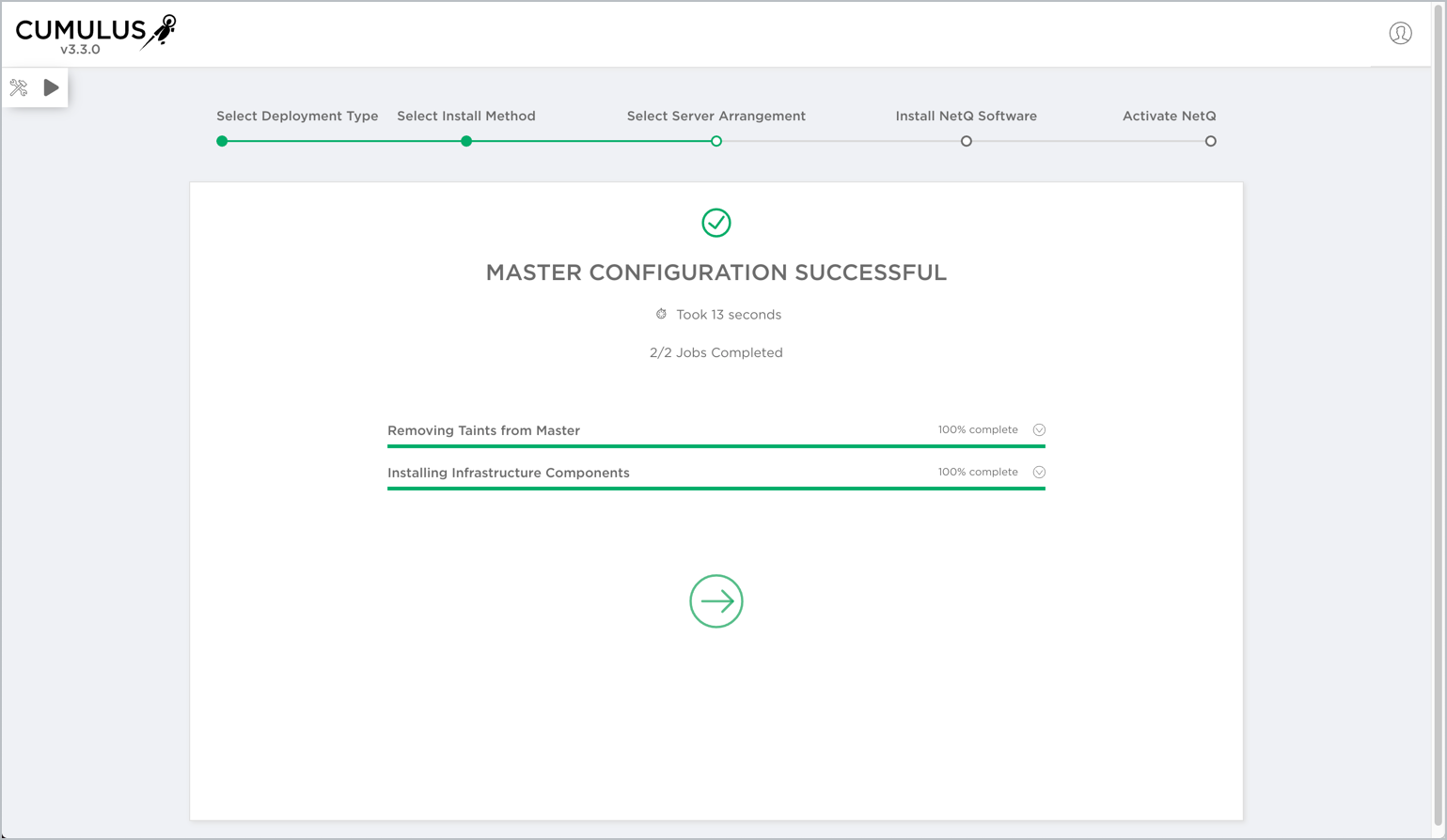 netq boostrap resetandnetq bootstrap mastercommands, then reopen the Admin UI to start installation again. - Yes: click