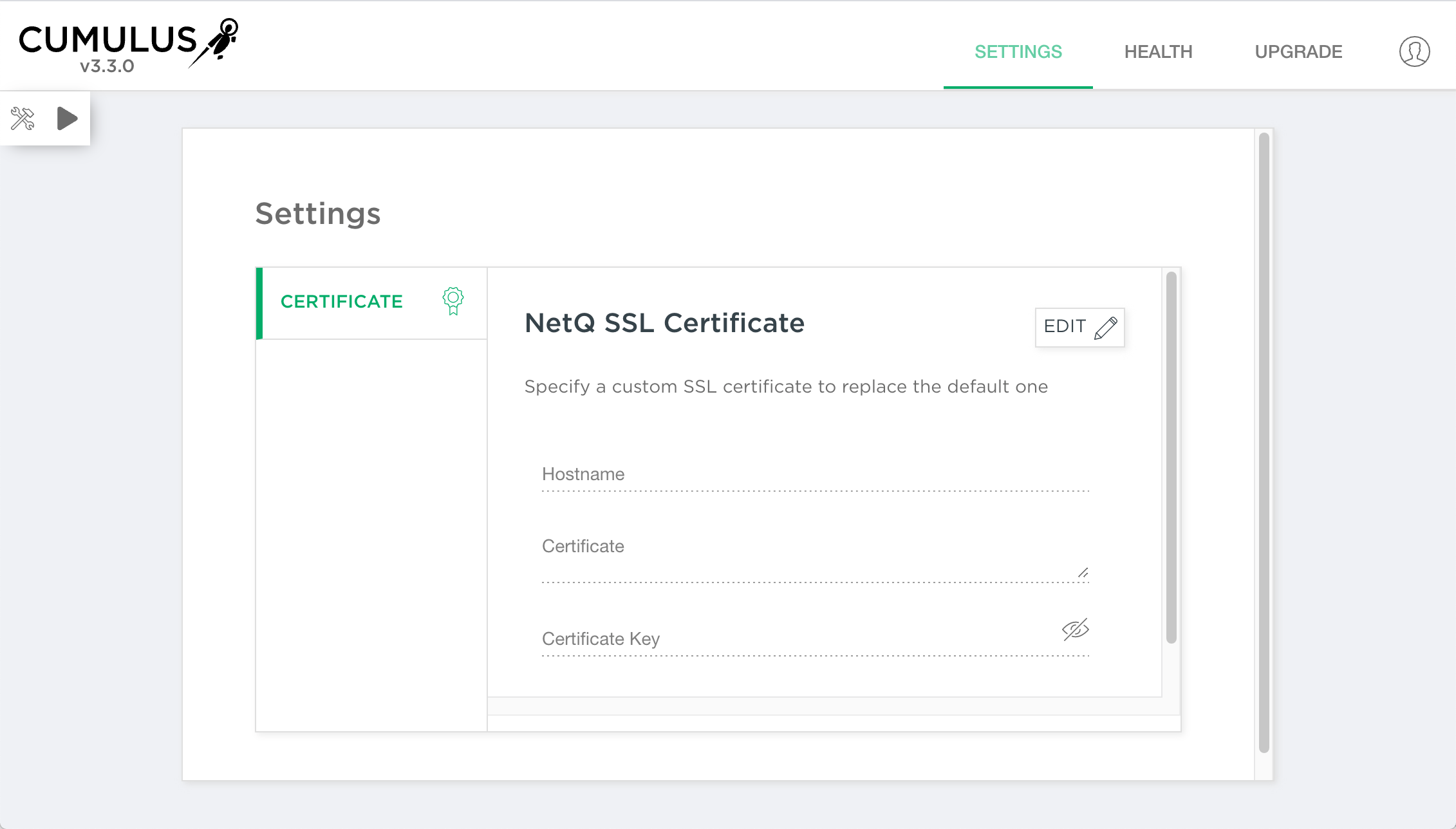 Enter the hostname, certificate and certificate key in the relevant fields.