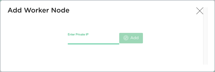 Click Add Worker Node. Enter the unique private IP address for the first worker node. It cannot be the same as the master node or other worker nodes. Click Add.