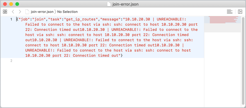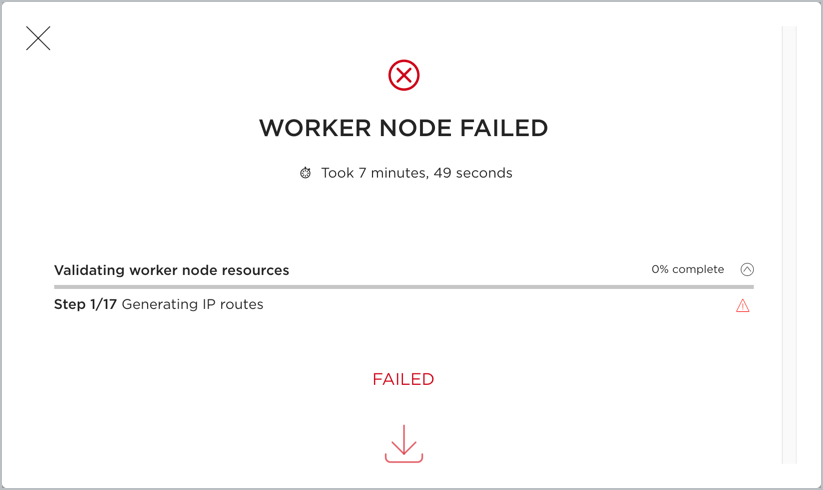 If either of the add worker jobs fail, an indication is given. For example, the IP address provided for the worker node was unreachable. You can see this by clicking