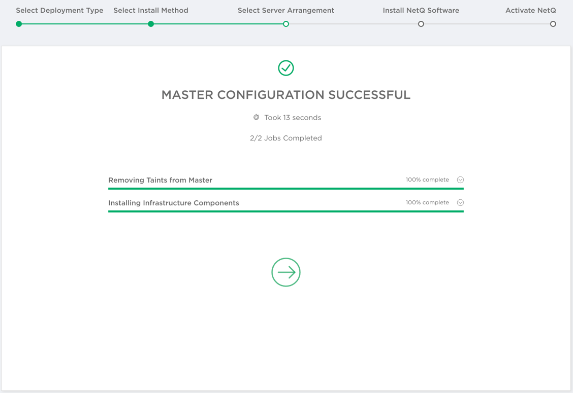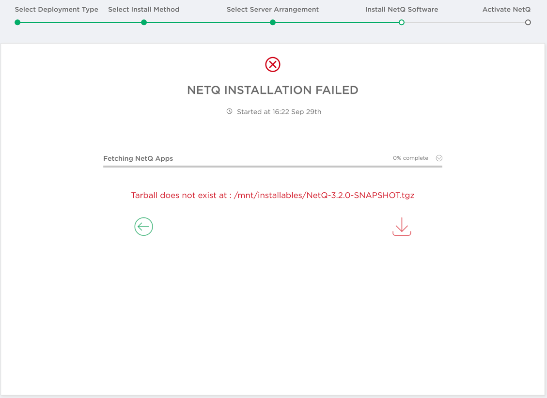 netq boostrap resetandnetq bootstrap mastercommands, then reopen the Admin UI to start installation again. - Yes: click