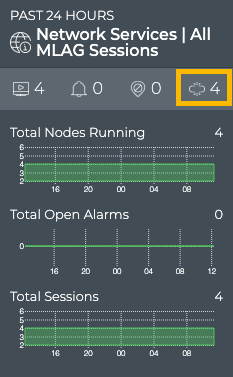 To view the summary, open the small Network Services|All MLAG Sessions card. In this example, the number of devices running the MLAG service is 4 and no alarms are present.