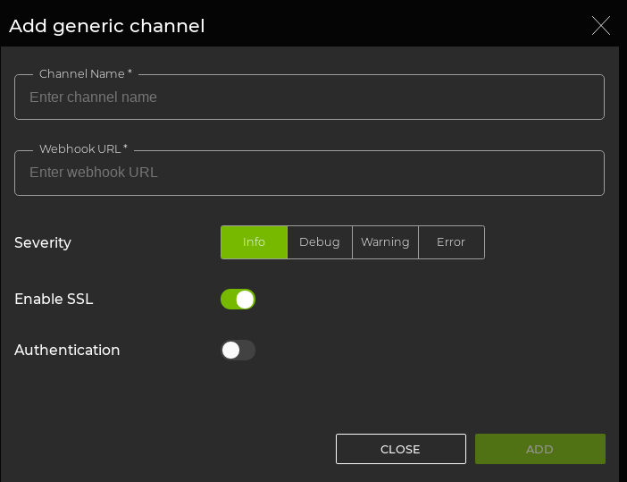 - When no channels have been specified, click Add Syslog Channel.