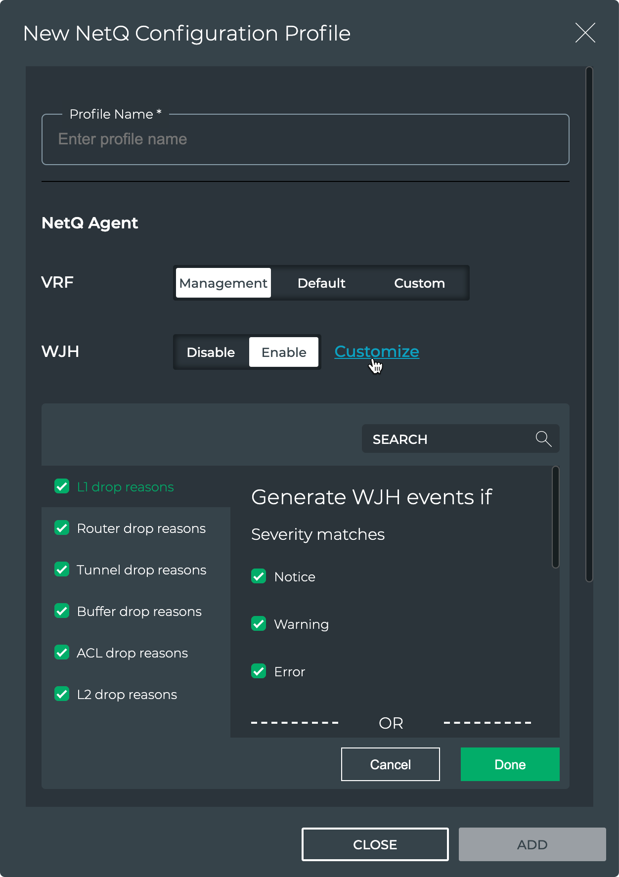 You can change the switch configuration assignment at any time. For example you might have a switch that is starting to experience reduced performance, so you want to run What Just Happened on it to see if there is a particular problem area. You can reassign this switch to a new configuration with WJH enabled on the NetQ Agent while you test it. Then you can change it back to its original assignment.
