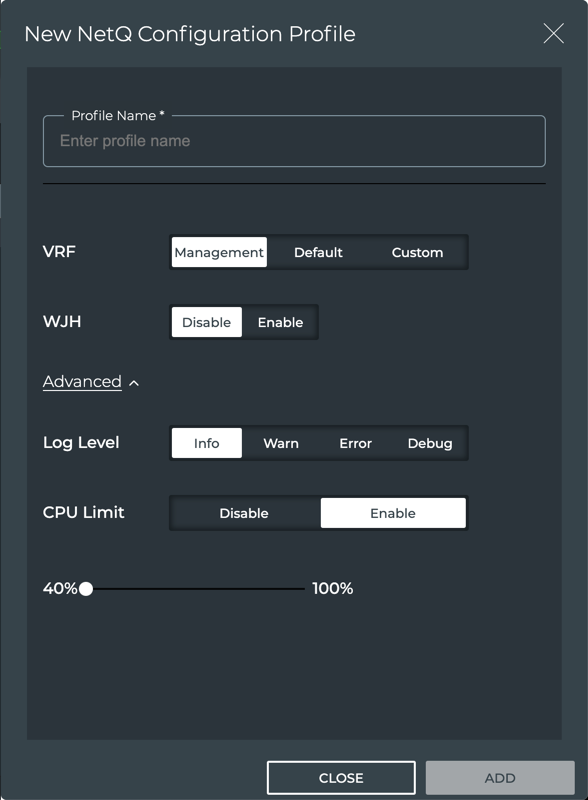 Accept the VRF selection of Management, or optionally change it to Default. Note that changing the VRF might cause some agents to become unresponsive.
