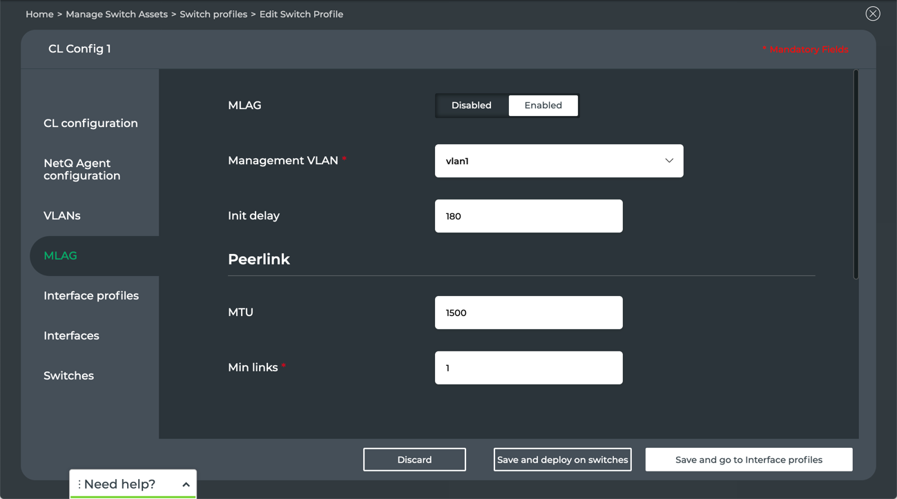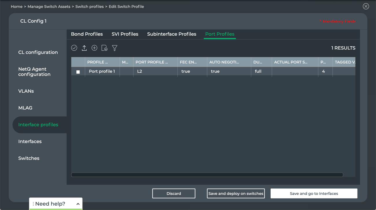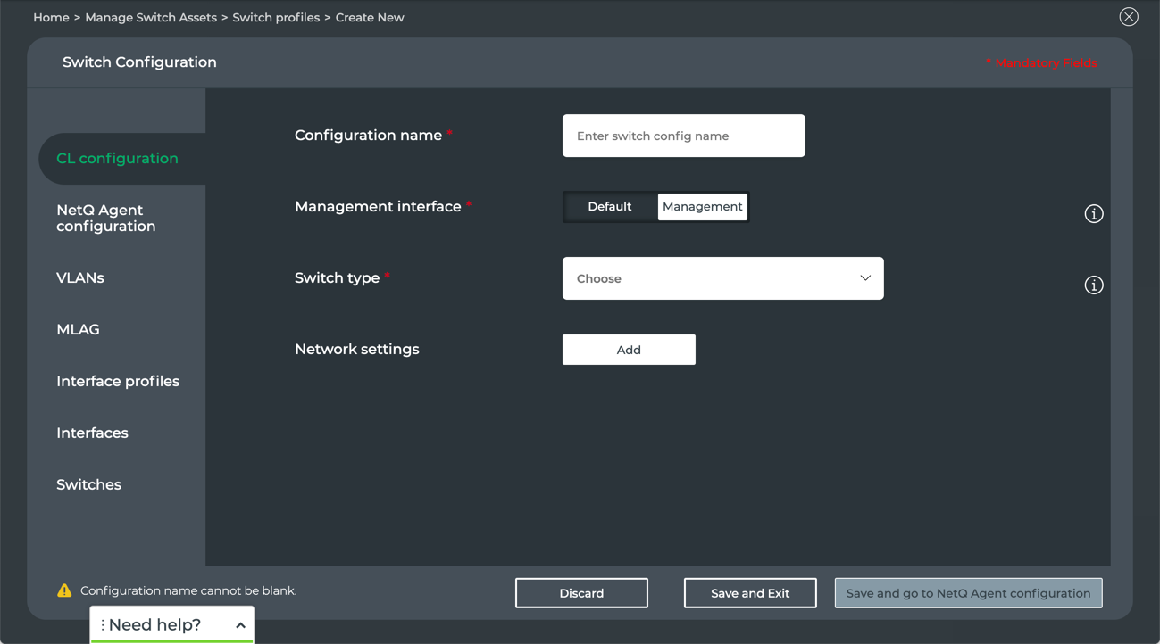 If you need to create a new switch configuration, follow the instructions in Create Switch Configuration Profiles.