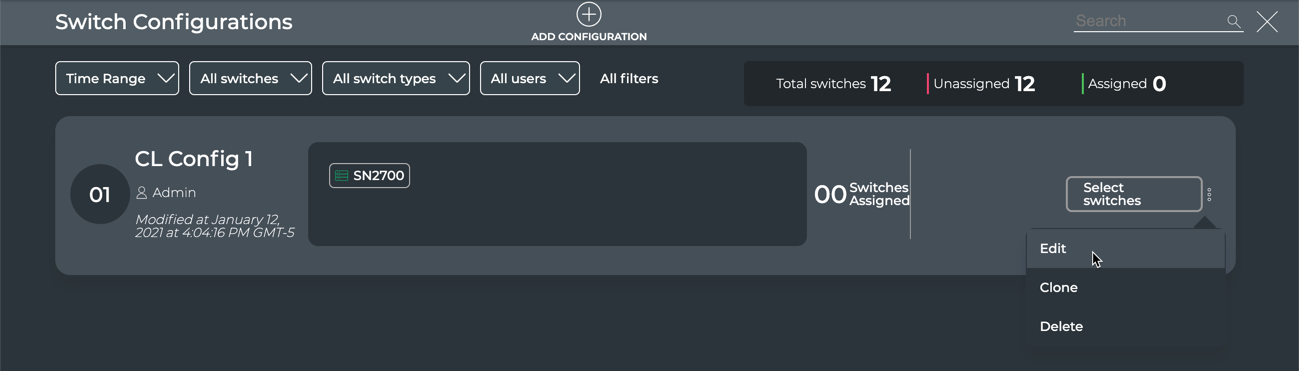 You can edit a switch configuration at any time. After you have made changes to the configuration, you can apply it to the same set of switches or modify the switches using the configuration as part of the editing process.