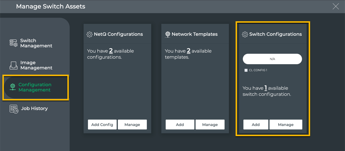 Monitoring and troubleshooting are NetQ's main utilities. That is why NVIDIA is no longer supporting switch configuration management and will remove this feature in the NetQ 4.3.0 release. Contact your NVIDIA sales team if you have any questions.