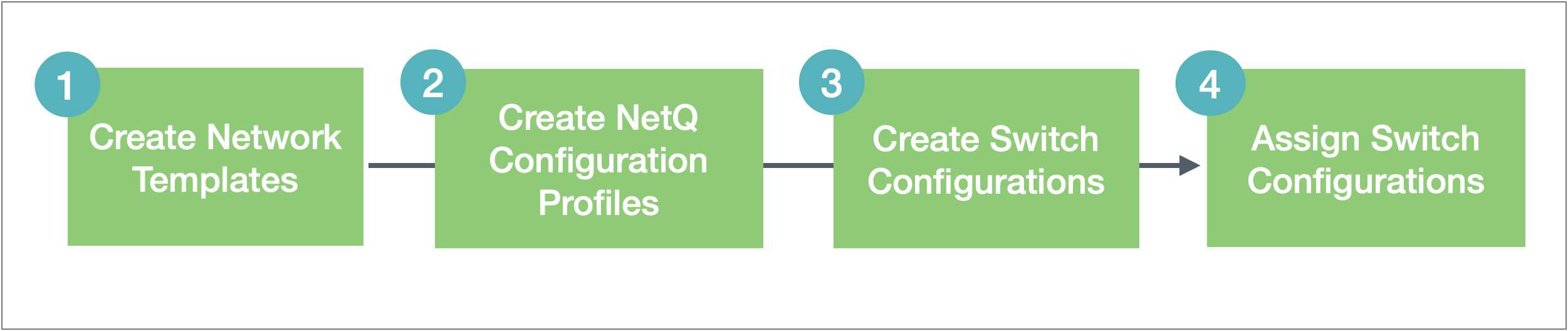 You can use the NetQ UI to configure switches using one or more switch configurations. To enable consistent application of configurations, switch configurations can contain network templates for SNMP, NTP, and user accounts, VLAN and MLAG settings, and configuration profiles for interfaces and NetQ Agents.