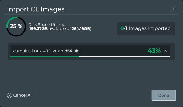 The Cumulus Linux Images card now shows the number of images you uploaded.