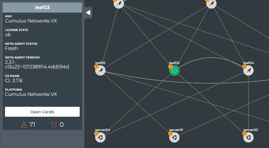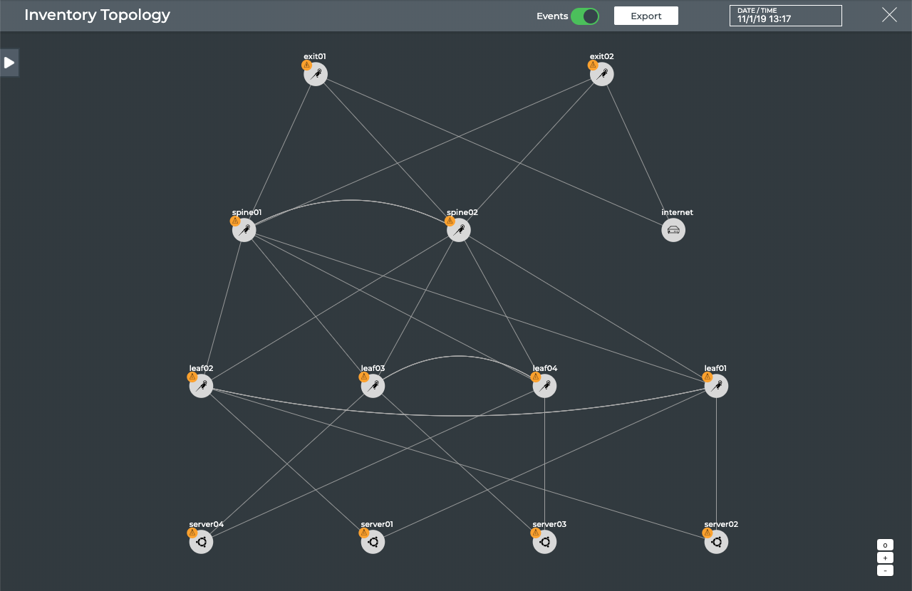 The core capabilities of NetQ enable you to monitor your network by viewing performance and configuration data about your individual network devices and the entire fabric networkwide. The topics contained in this section describe monitoring tasks you can perform from a topology view rather than through the NetQ UI card workflows or the NetQ CLI.
