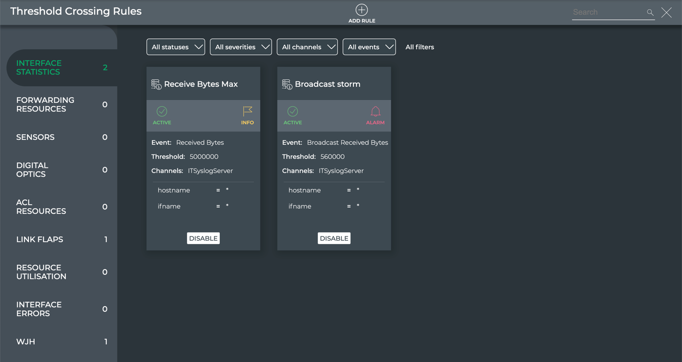 - Scope 2 send events for all interfaces on switches that start with leaf (moderately specific)