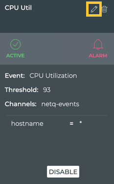 cumulus@switch:~$ netq add tca tca_id TCA_DISK_UTILIZATION_UPPER_1 is_active false
