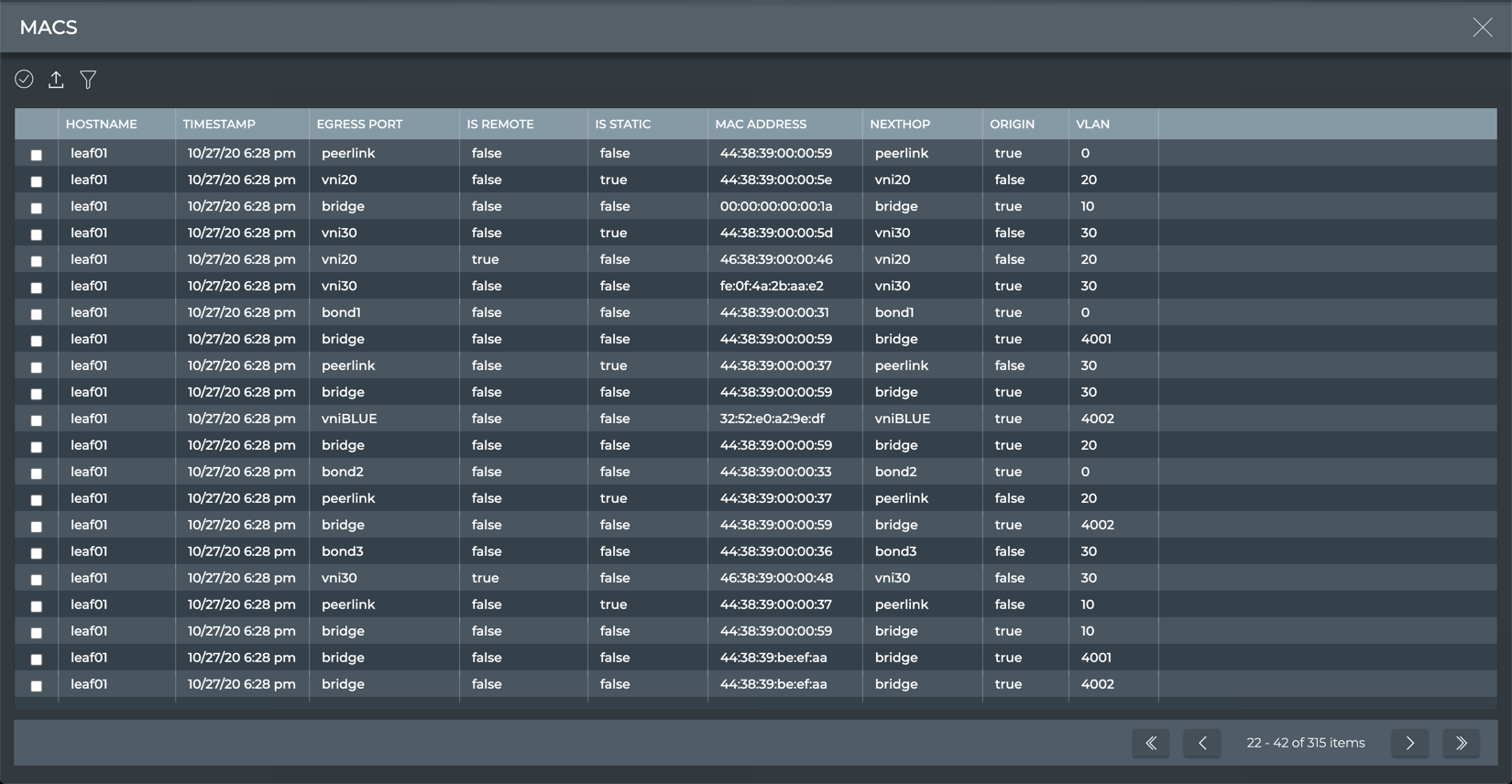 | Hostname | Name of the switch or host where the MAC address resides |