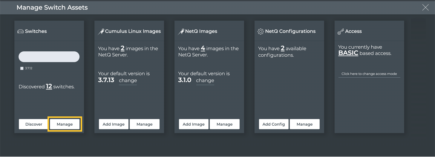 Click Manage on the Switches card.