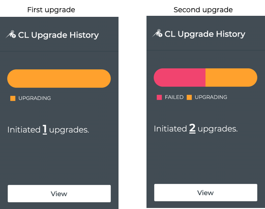 - Monitor the job with summary information only in the CL Upgrade History page. Open this view by clicking