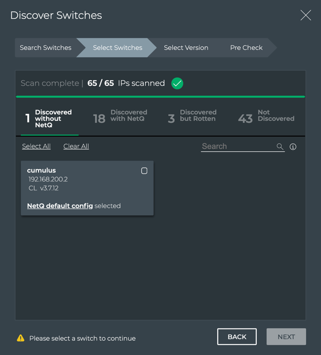 - Discovered without NetQ: Switches found without NetQ installed
