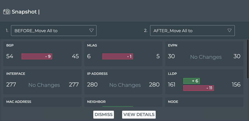 - Compare the network snapshots taken before and after the upgrade.