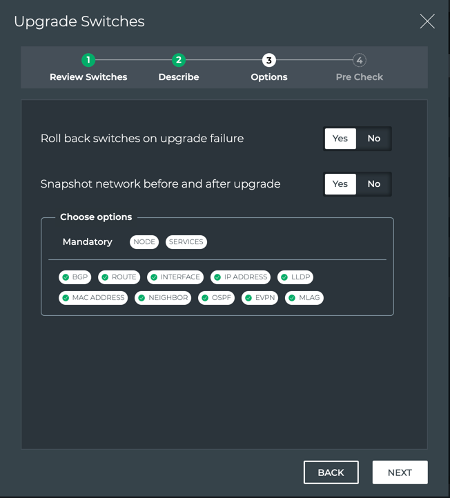 You can also generate a network snapshot before and after the upgrade by adding the run-snapshot-before-after option to the command: