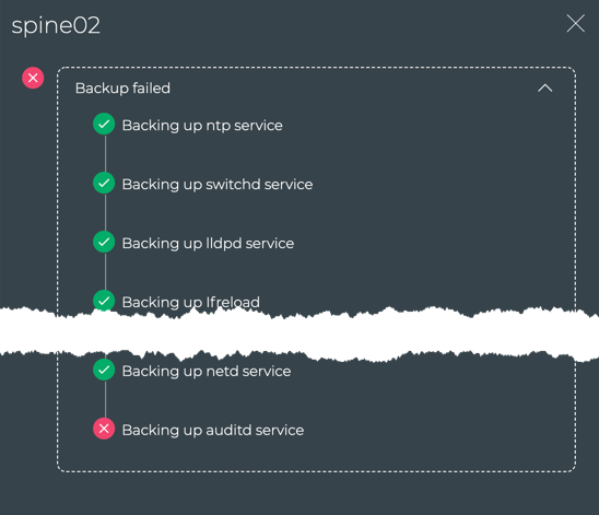 | Upgrade task failed | Failed at- <task that failed>. For example: Failed at- MLAG check for the peerLink interface status |