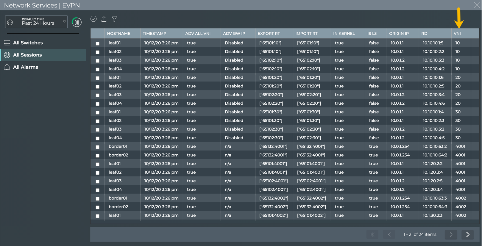 View All EVPN Sessions on a VNI