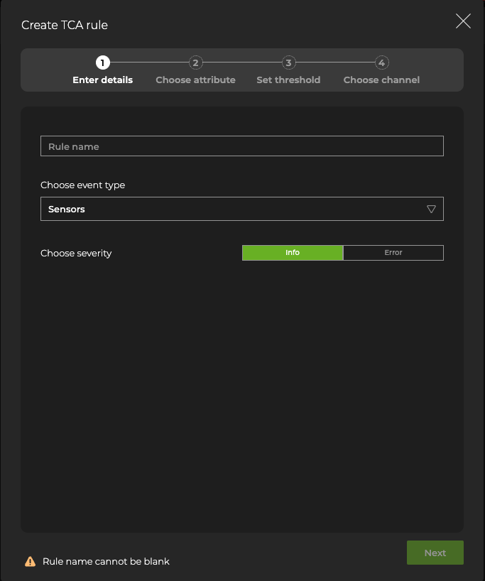 Click Create a rule. Enter a name for the rule and assign a severity, then click Next.