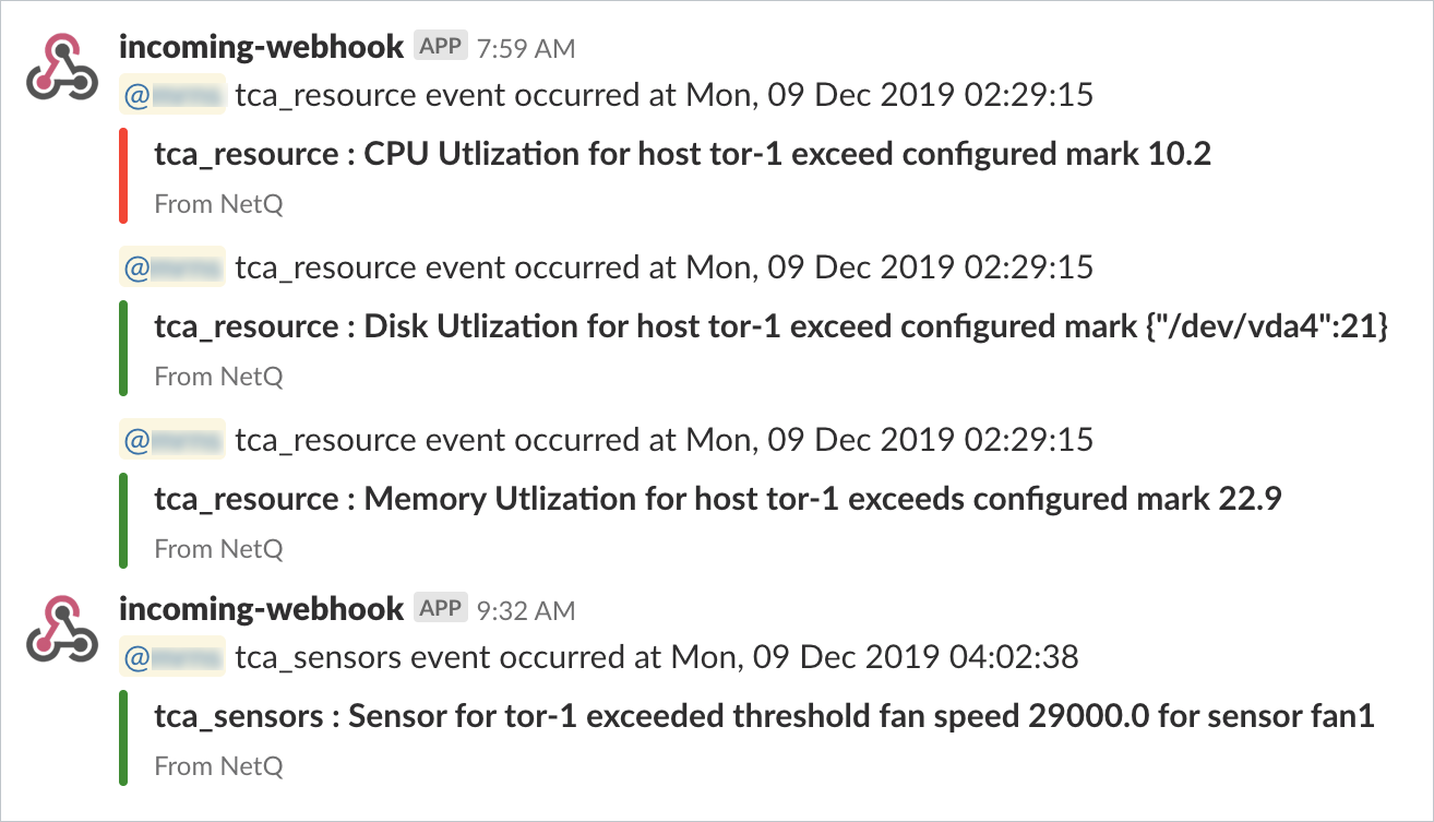 For a Slack channel, the event messages should be similar to this: