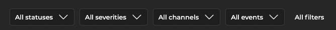 After creating a rule, you can use the filters that appear above the rule cards to filter by status, severity, channel, and/or events.