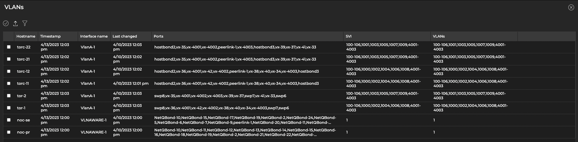 From here you can view a list of switches or hostnames and their associated VLANs, interfaces, SVIs (switch virtual interfaces), and ports.