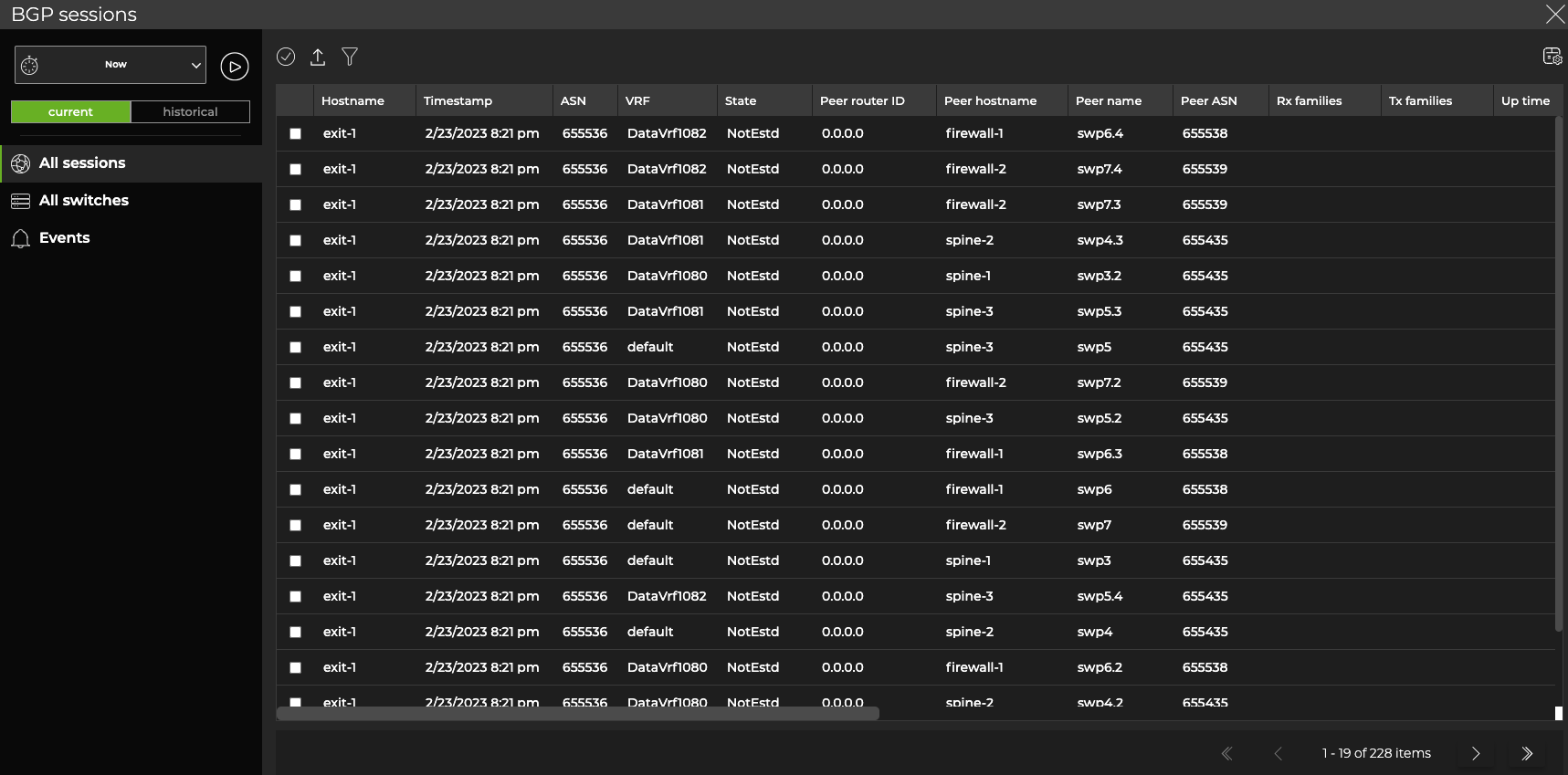 NetQ adds a new, BGP ‘single-session’ card to your workbench. From this card, you can view session state changes and compare them with events, and monitor the running BGP configuration and changes to the configuration file.