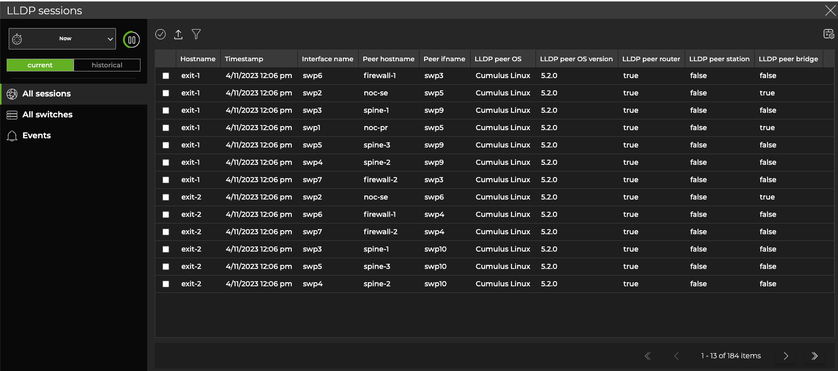 - A list of all switches running LLDP