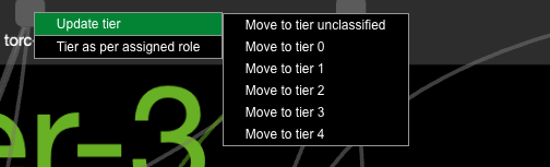 This menu also displays options to move the device to the unclassified tier or to a new tier. In the example above, the topology consists of three tiers and an unclassified tier. By selecting Move to tier 4, NetQ creates a new tier and places the selected device within it.